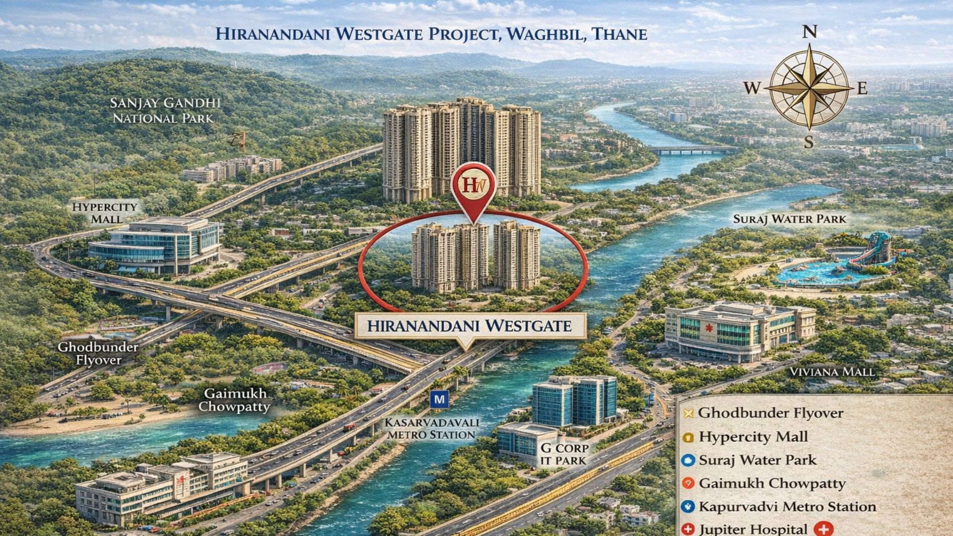 The location of Hiranandani Westgate Thane attracts many home buyers. This project stands near Ghodbunder Road in Thane West. Most people recognize this area as a fast-growing residential zone. Infrastructure development improves connectivity in this region every day. As a result, daily travel becomes faster and more convenient for the residents.